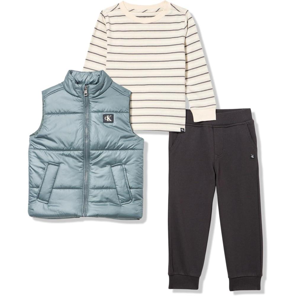 Get the Calvin Klein boys 3 Pc Puff Vest Set(Indy Bay/Phanthom) you want at a discounted price during our markdown sale event.