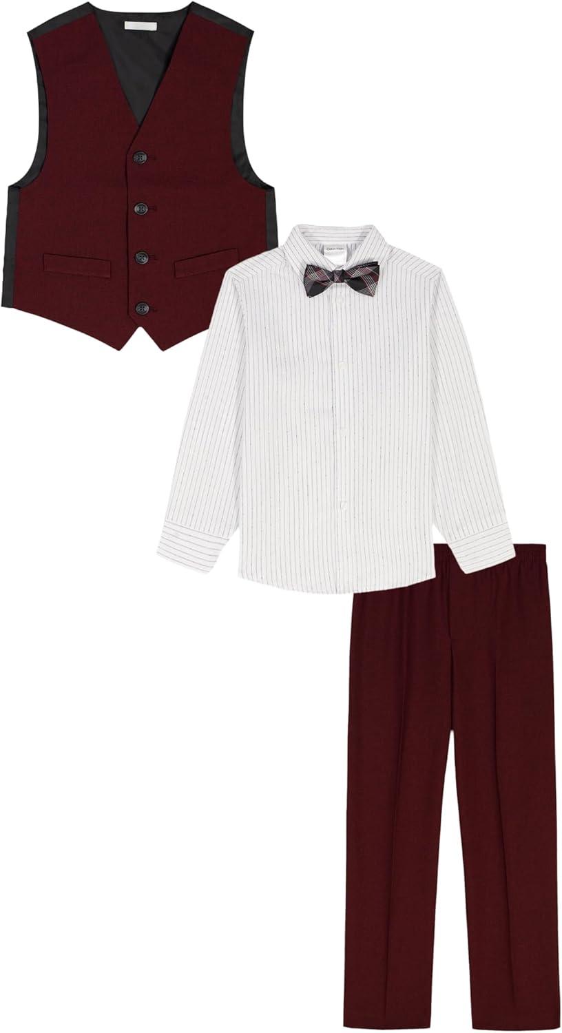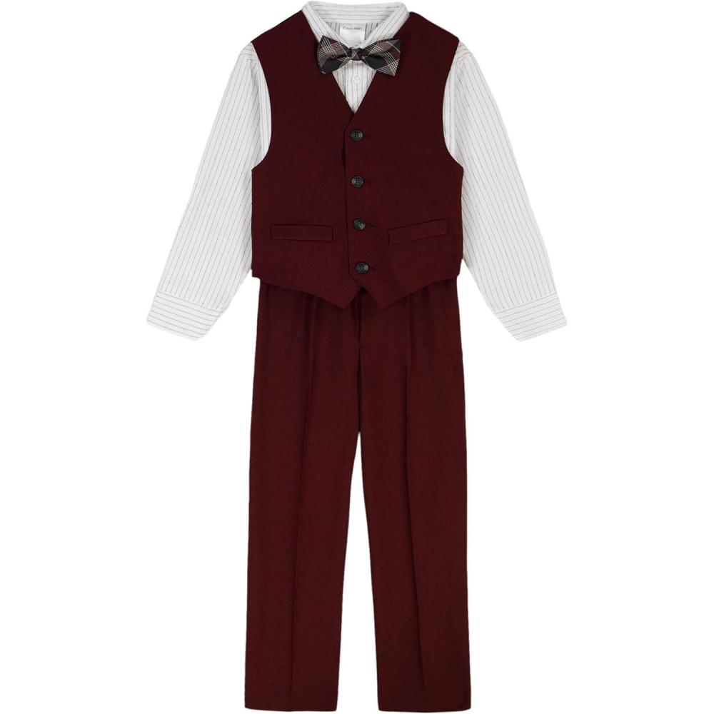 Calvin Klein Boys’ 4-Piece Formal Suit Set, Vest, Pants, Collared Dress Shirt, and Tie(Heirloom Red)