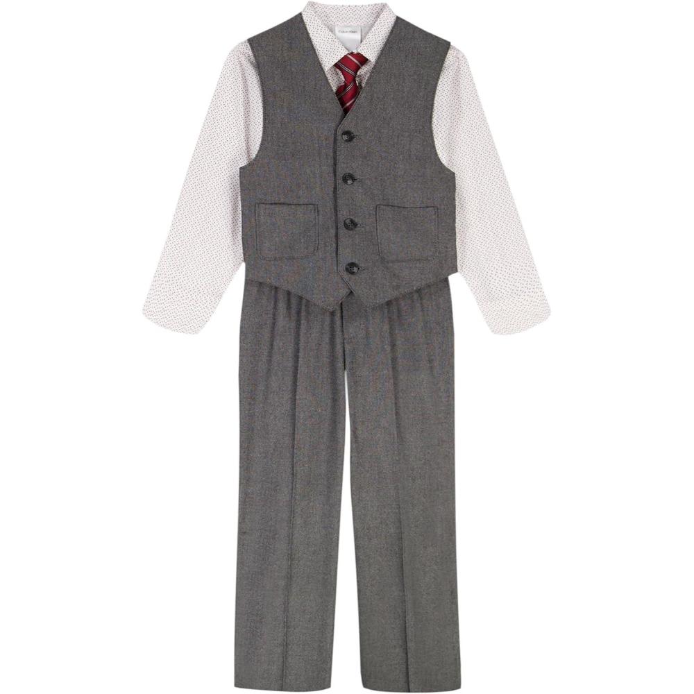 imageCalvin Klein Boys 4Piece Formal Suit Set Vest Pants Collared Dress Shirt and TieSilverware