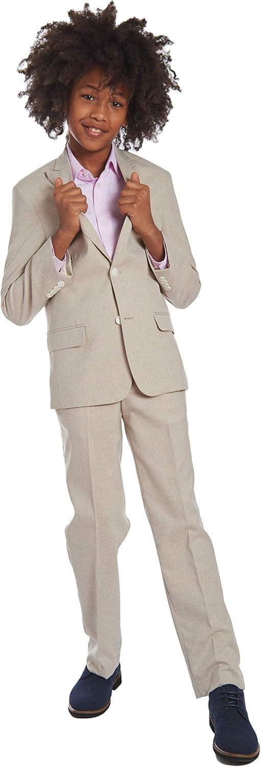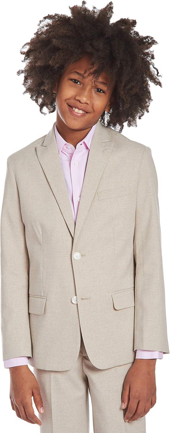 Calvin Klein Boys Blazer Suit Jacket, 2-Button Single Breasted Closure, Buttoned Cuffs & Front Flap Pockets(Birch)