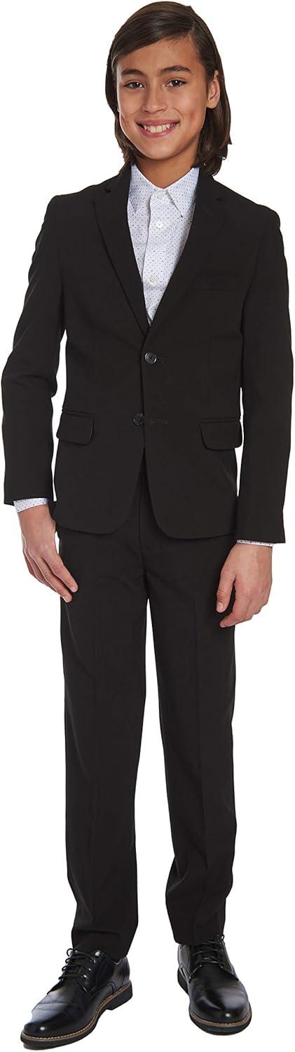 Calvin Klein Boys Flat-Front Bi-Stretch Dress Pant, Straight Leg Fit, Belt Loops & Front Pockets(Black)