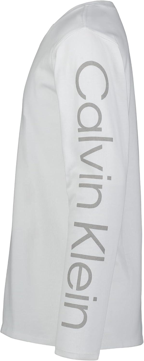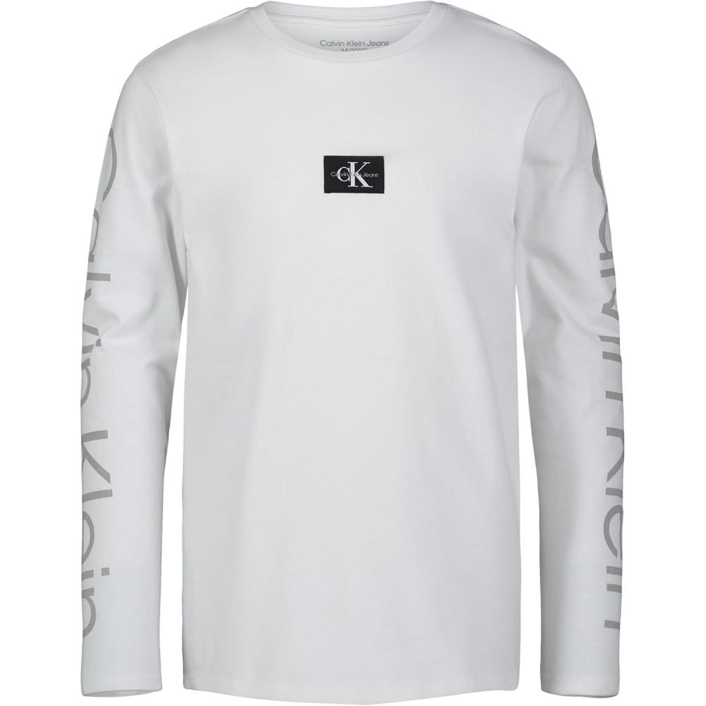 Calvin Klein Boys Long Sleeve Crew Neck T-Shirt, Soft, Comfortable, Relaxed Fit(Ck Sleeve Print White)