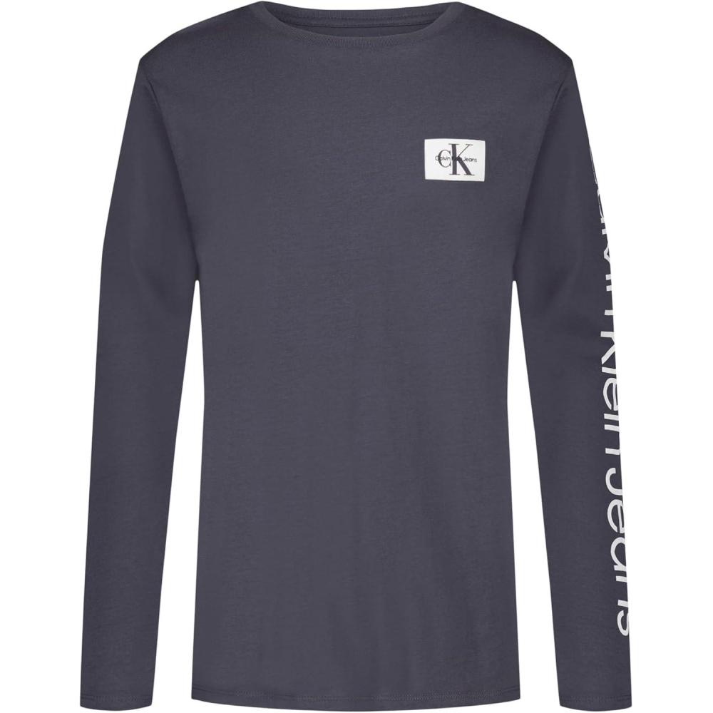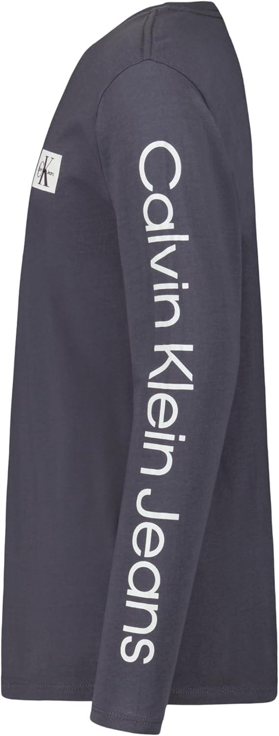 Calvin Klein Boys Long Sleeve Crew Neck T-Shirt, Soft, Comfortable, Relaxed Fit(Clean Sleeve Hemisphere)
