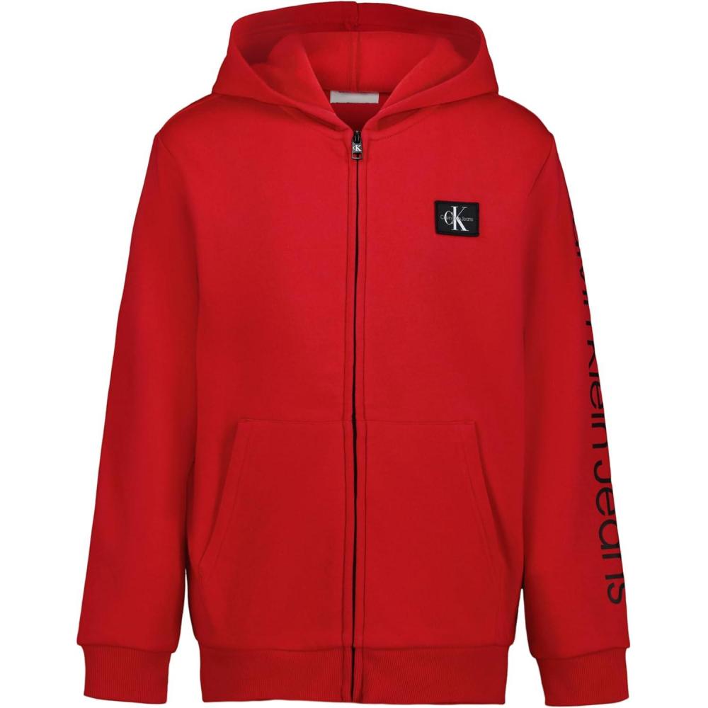 Calvin Klein boys Long Sleeve Full Zip Fleece Hoodie(Ckj Racing Red)
