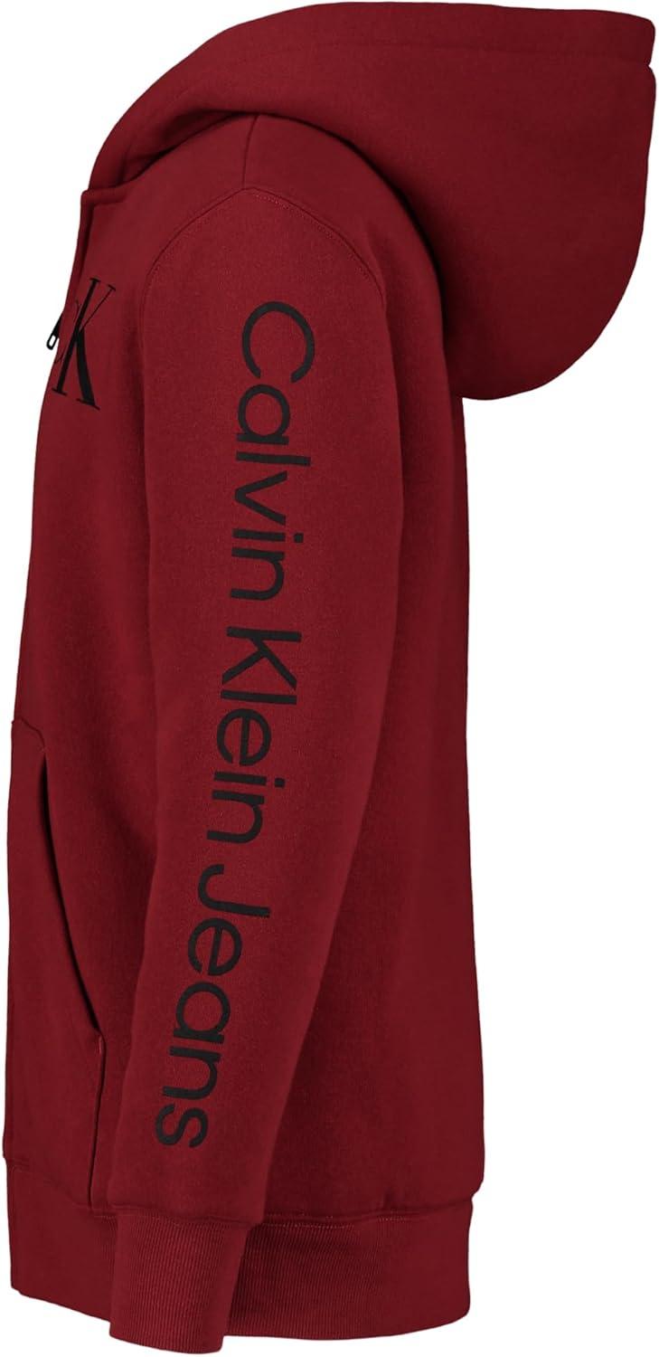 Calvin Klein boys Long Sleeve Full Zip Fleece Hoodie(Sherpa-lined Red Dahlia)
