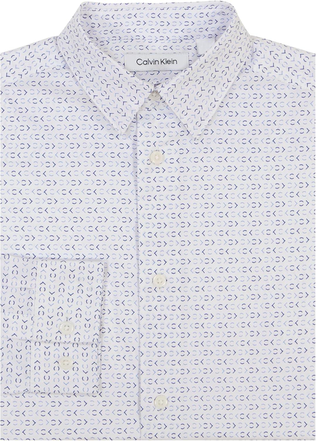 Calvin Klein Boys' Long Sleeve Patterned Dress Shirt, Button-Down Style with Cuffs & Shirttail Hem(Blue Glyph Print)