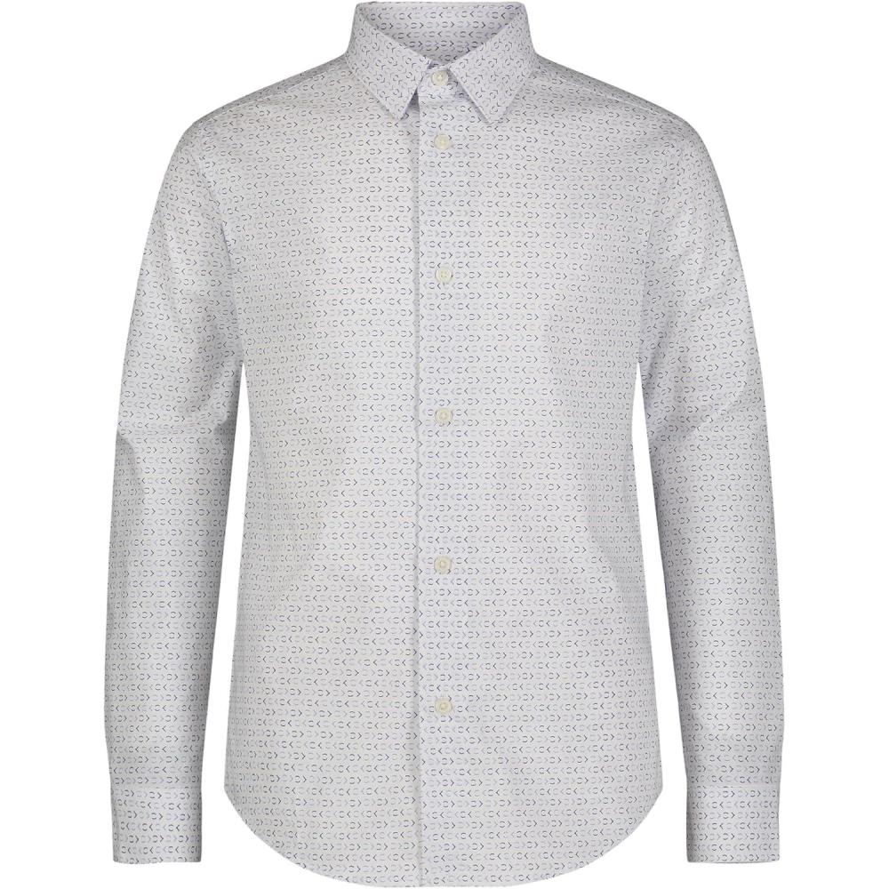 imageCalvin Klein Boys Long Sleeve Patterned Dress Shirt ButtonDown Style with Cuffs ampamp Shirttail HemBlue Glyph Print