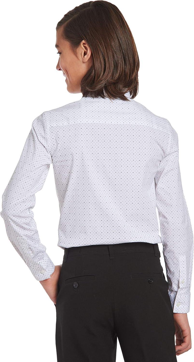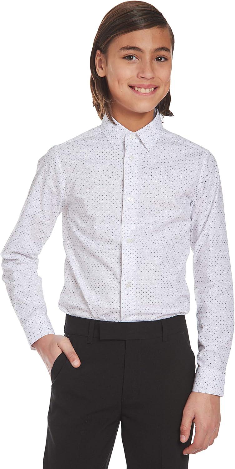 Calvin Klein Boys' Long Sleeve Patterned Dress Shirt, Button-Down Style with Cuffs & Shirttail Hem(Logo White)