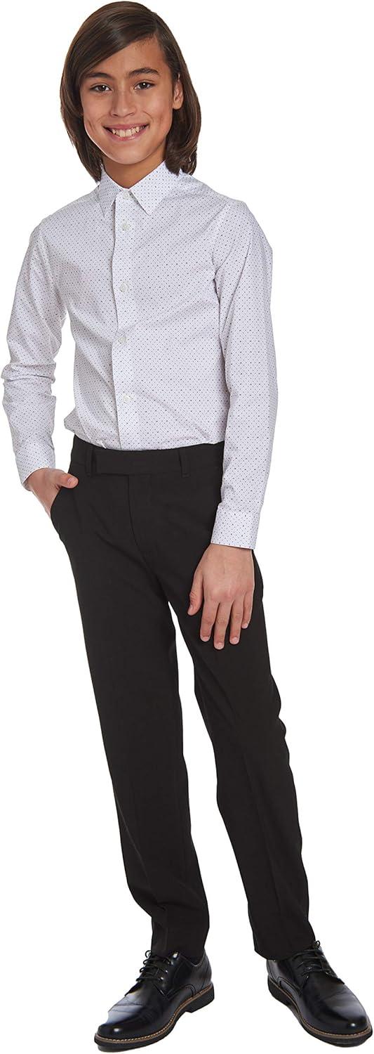 Calvin Klein Boys’ Long Sleeve Patterned Dress Shirt, Button-Down Style with Cuffs & Shirttail Hem(Black Dobby Stripe)