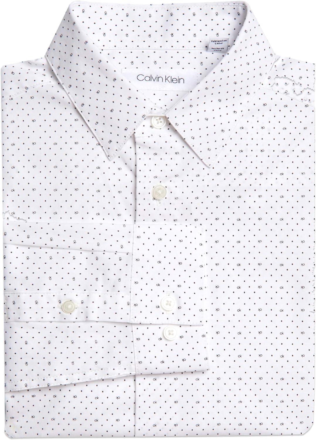 Calvin Klein Boys’ Long Sleeve Patterned Dress Shirt, Button-Down Style with Cuffs & Shirttail Hem(Logo White)
