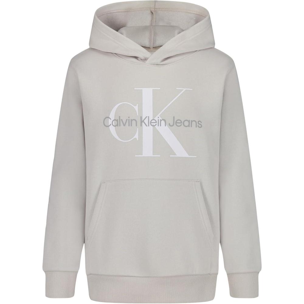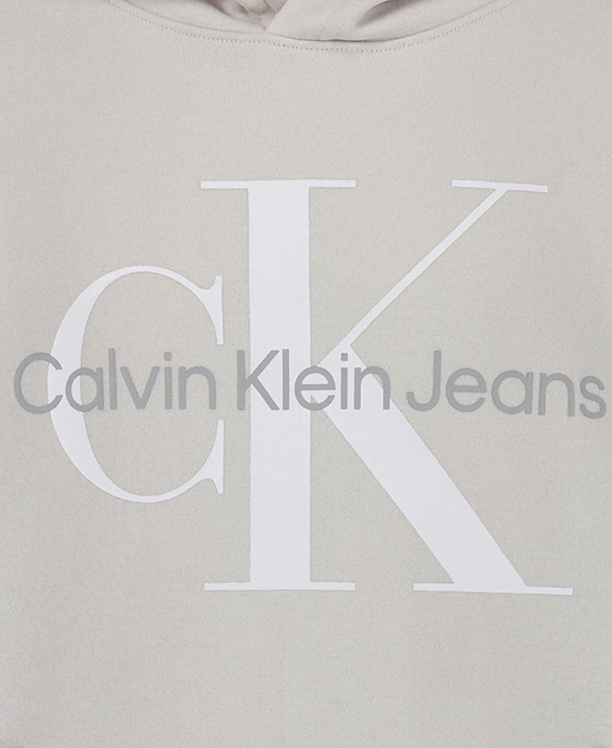 Calvin Klein boys Long Sleeve Pullover Fleece Hoodie(Old School Island Fossil)