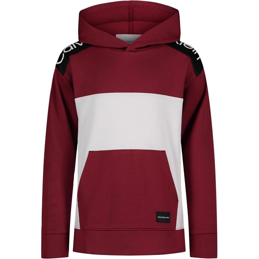 Calvin Klein boys Long Sleeve Pullover Fleece Hoodie(Performance Red)