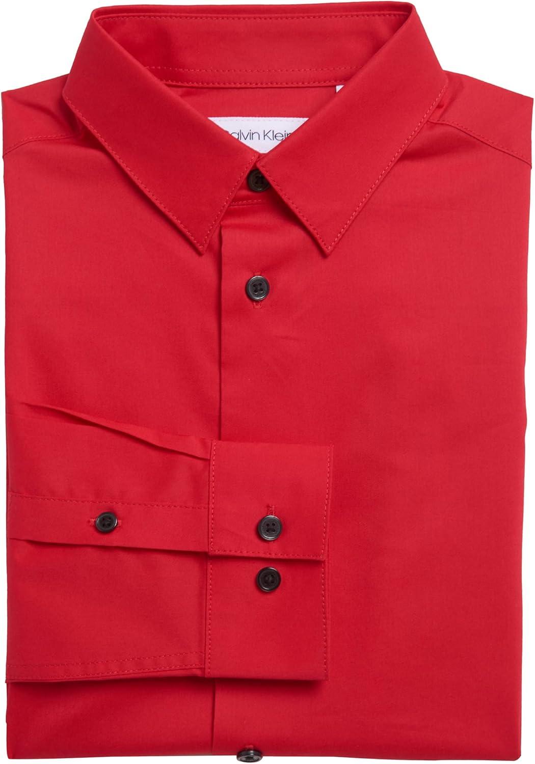 Calvin Klein Boys Long Sleeve Slim Fit Dress Shirt, Button-Down Style with Cuffs & Shirttail Hem(Red)