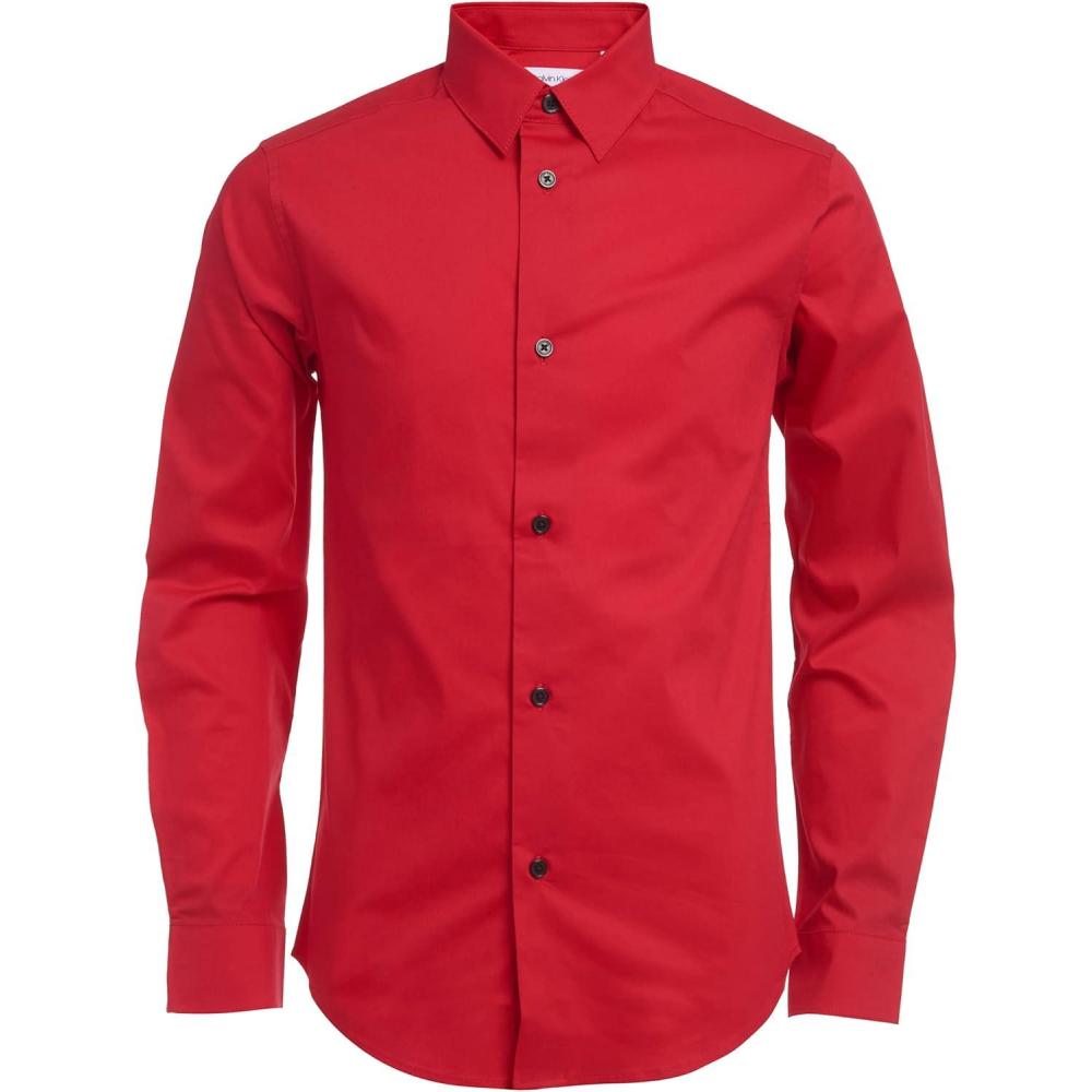 Calvin Klein Boys Long Sleeve Slim Fit Dress Shirt, Button-Down Style with Cuffs & Shirttail Hem(Lipstick Red)