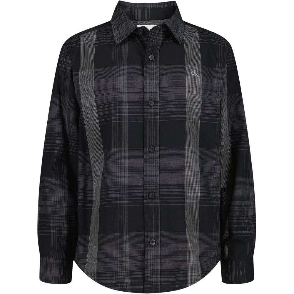 imageCalvin Klein Boys Long Sleeve Woven ButtonDown ShirtBlack Intricate Plaid