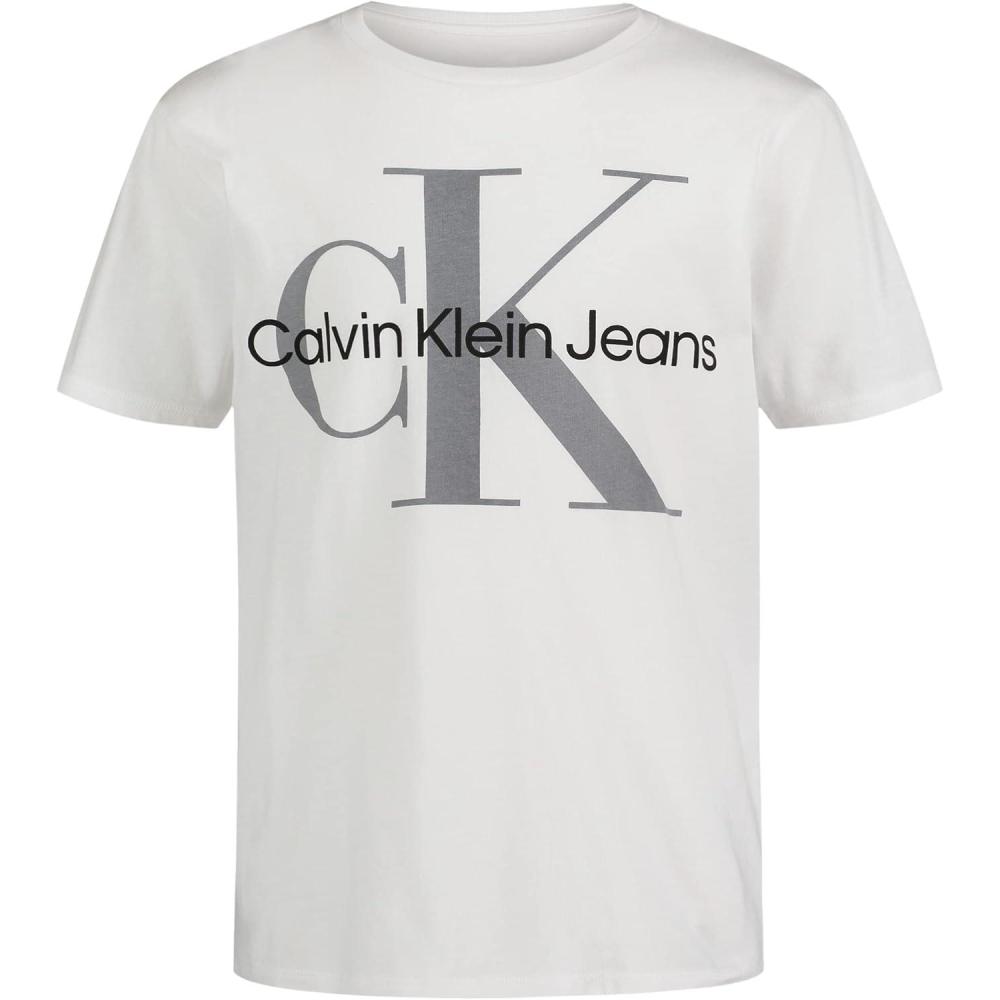 Calvin Klein Boys Short Sleeve Logo Crew Neck T-Shirt, Soft, Comfortable, Relaxed Fit(Classic Mono White)