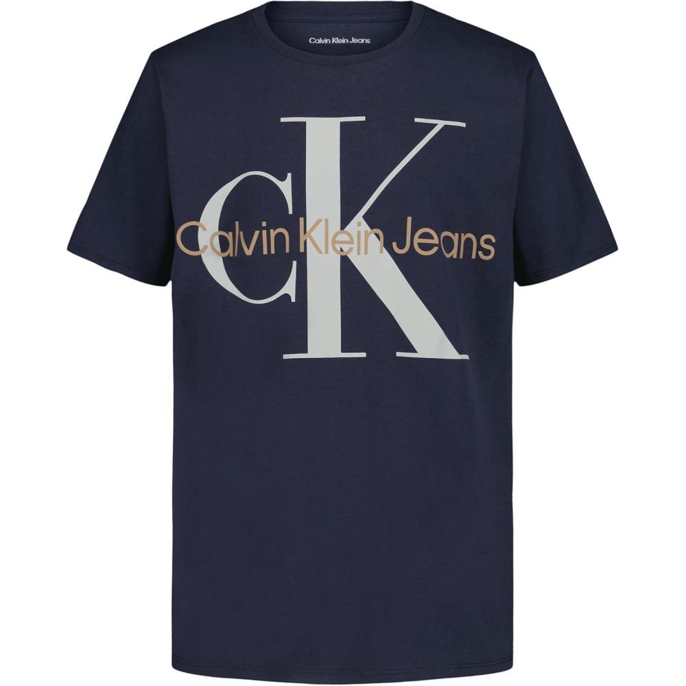 Calvin Klein Boys’ Short Sleeve Logo Crew Neck T-Shirt, Soft, Comfortable, Relaxed Fit(Mono Mediterranea)