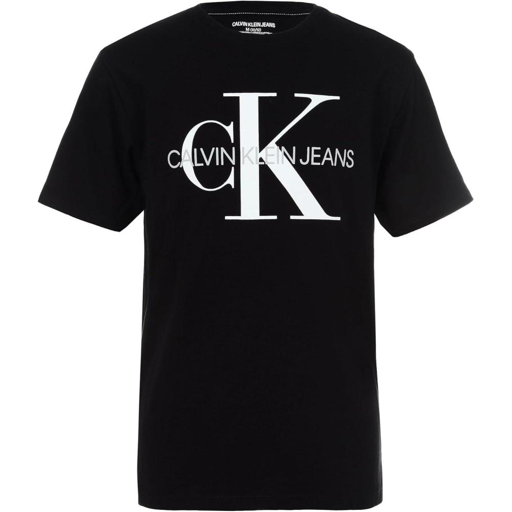imageCalvin Klein Boys Short Sleeve Logo Crew Neck TShirt Soft Comfortable Relaxed FitOld School True Black