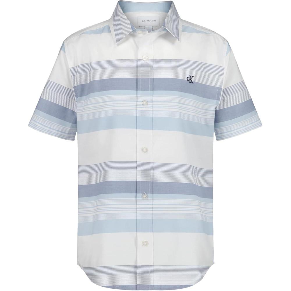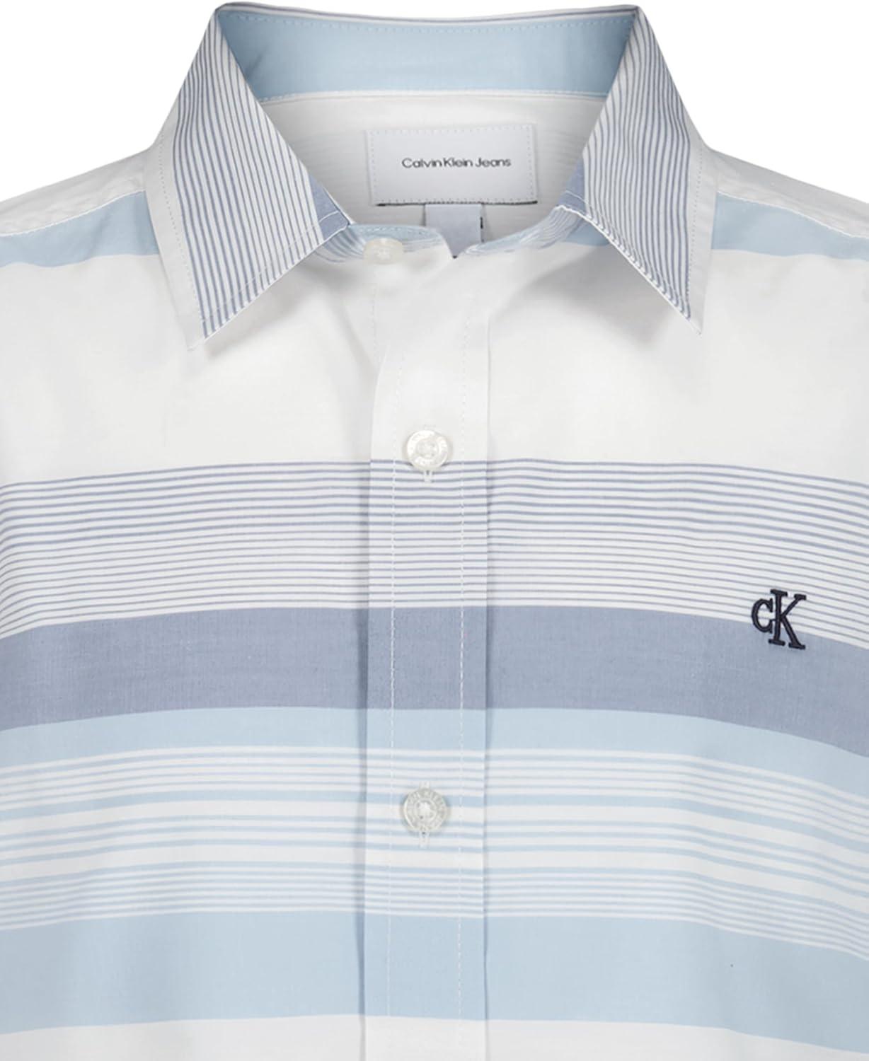Calvin Klein Boys’ Short Sleeve Woven Button-Down Shirt(Infinity Elemental Stripe)