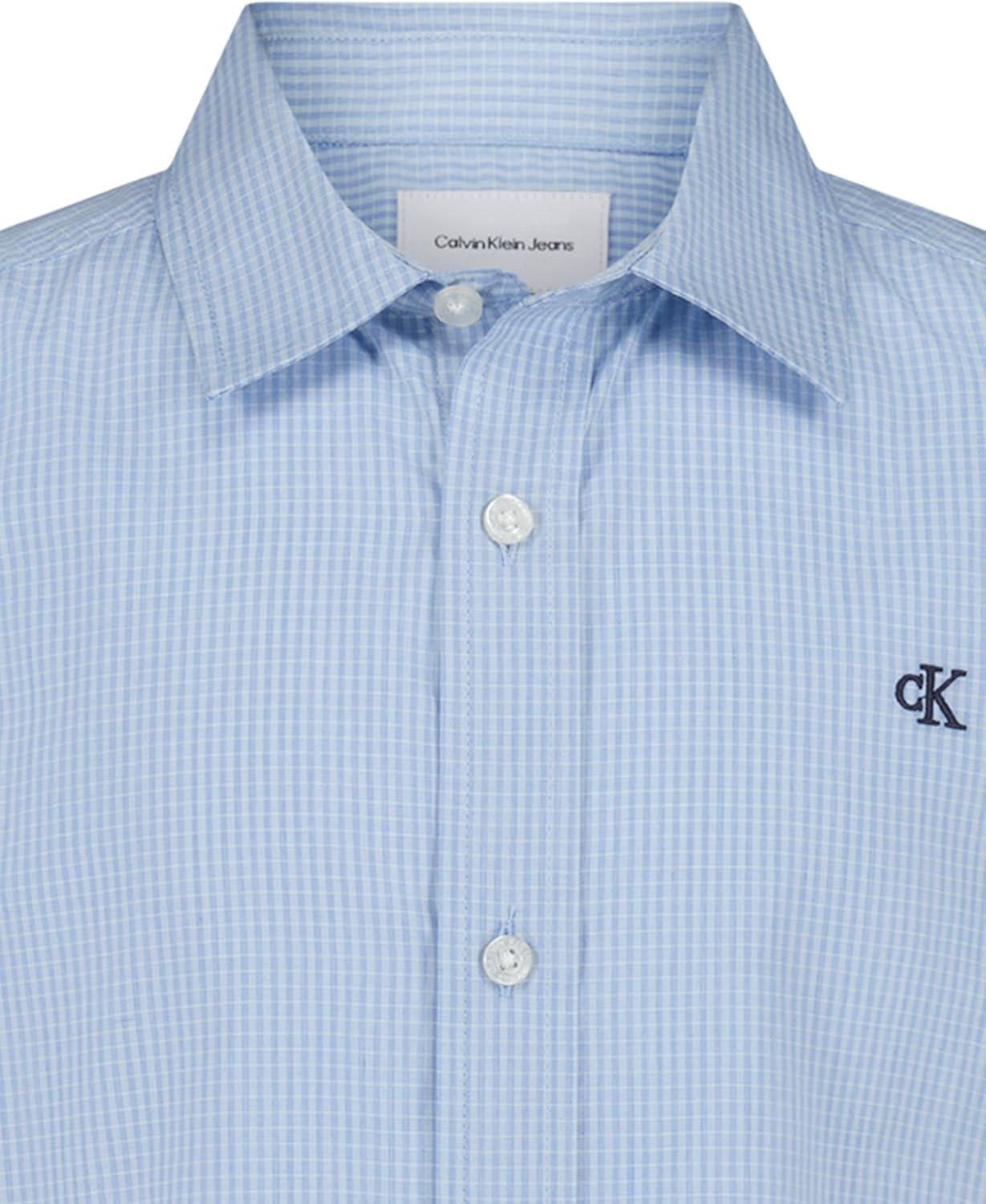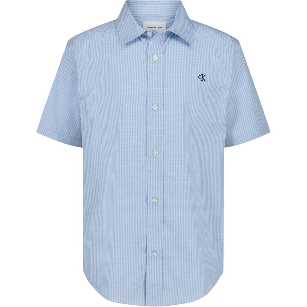 Calvin Klein Boys’ Short Sleeve Woven Button-Down Shirt(Provence Grid)