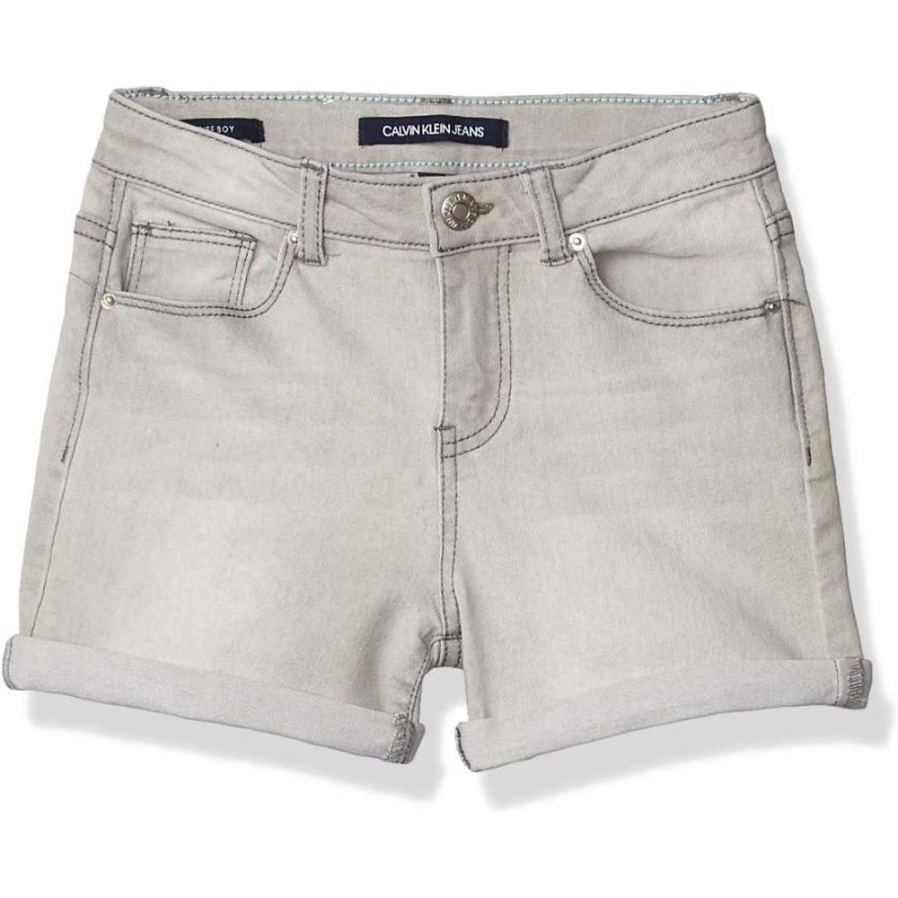 Calvin Klein Girls Boyfriend Fit Stretch Denim Jean Shorts(Overcast/Cuff)
