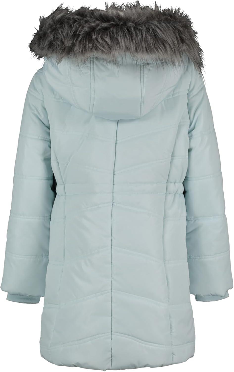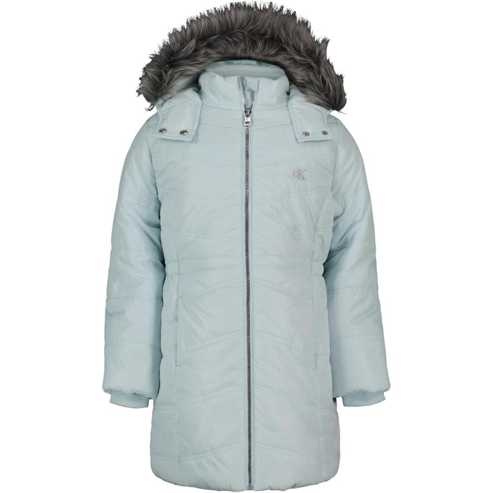 Calvin Klein Girls Hooded Winter Puffer Jacket, Full-length Heavyweight Coat With Fleece Lining(Aerial Pastel Blue)