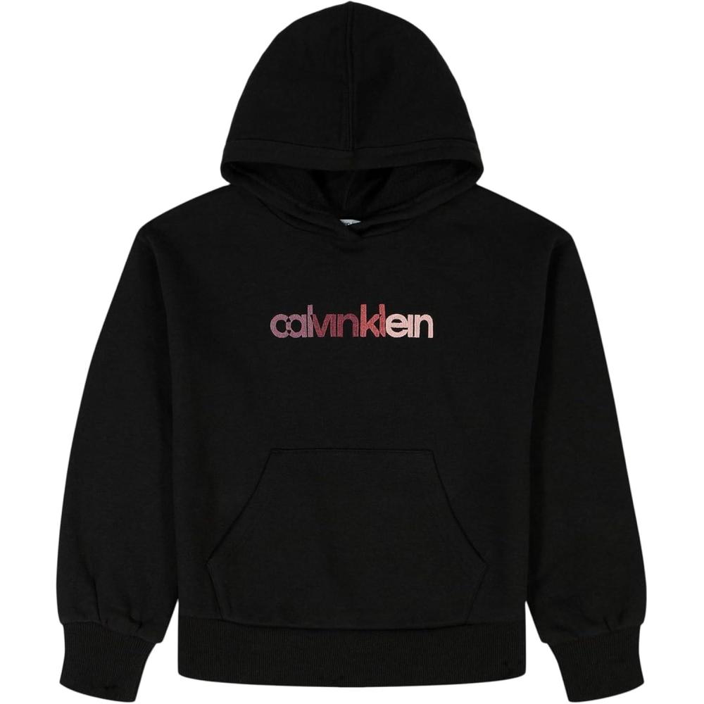 Calvin Klein Girls’ Long Sleeve Popover Fleece Hoodie Sweatshirt(Jumbo Logo Black)