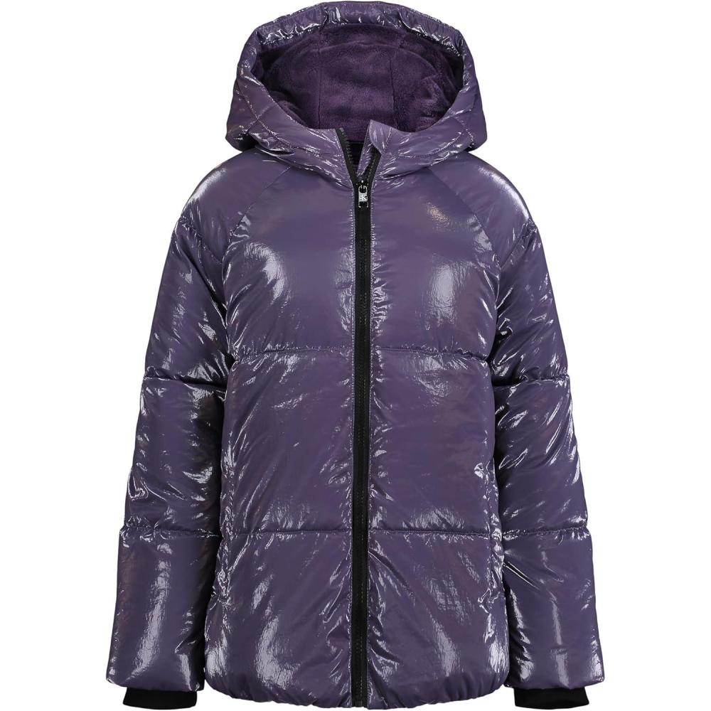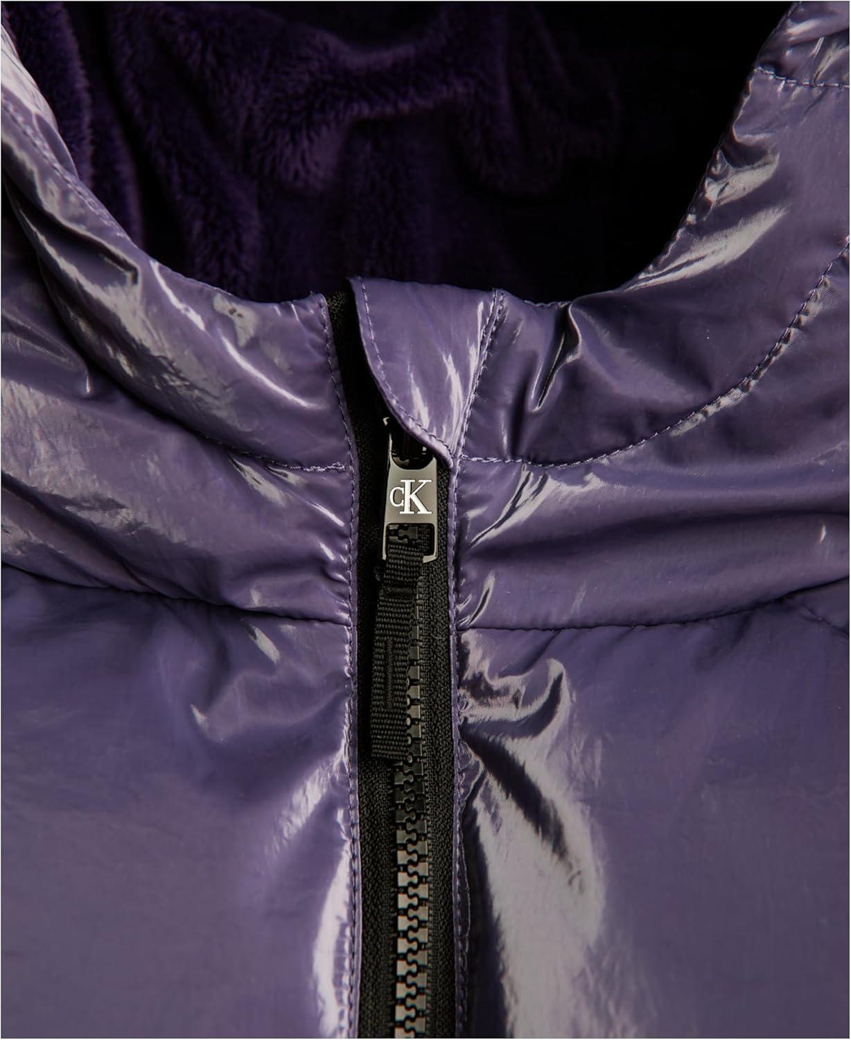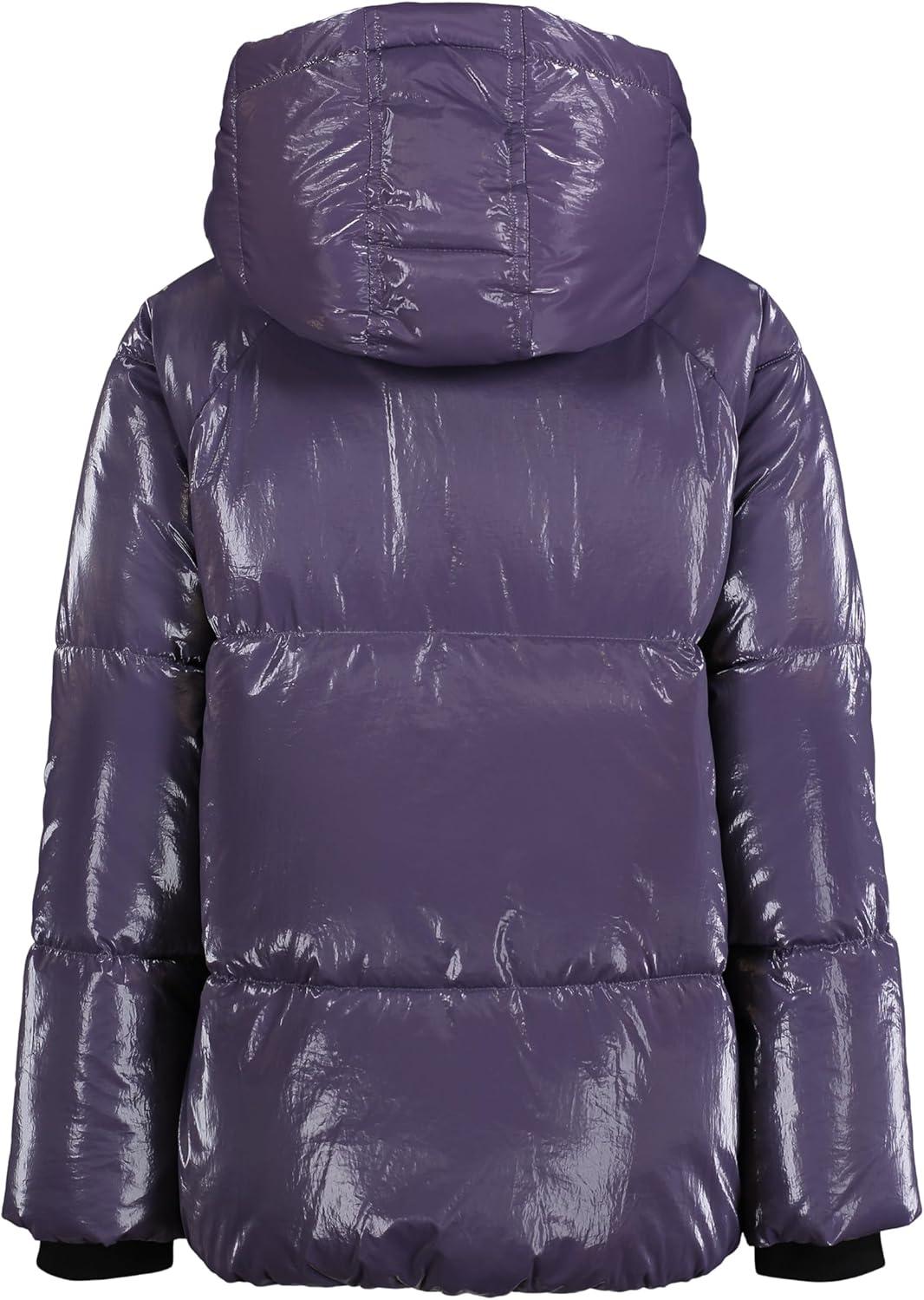Calvin Klein girls Short Length Hooded Winter Puffer Jacket With Fleece Lining(Liquid Shine Purple Plumeria)
