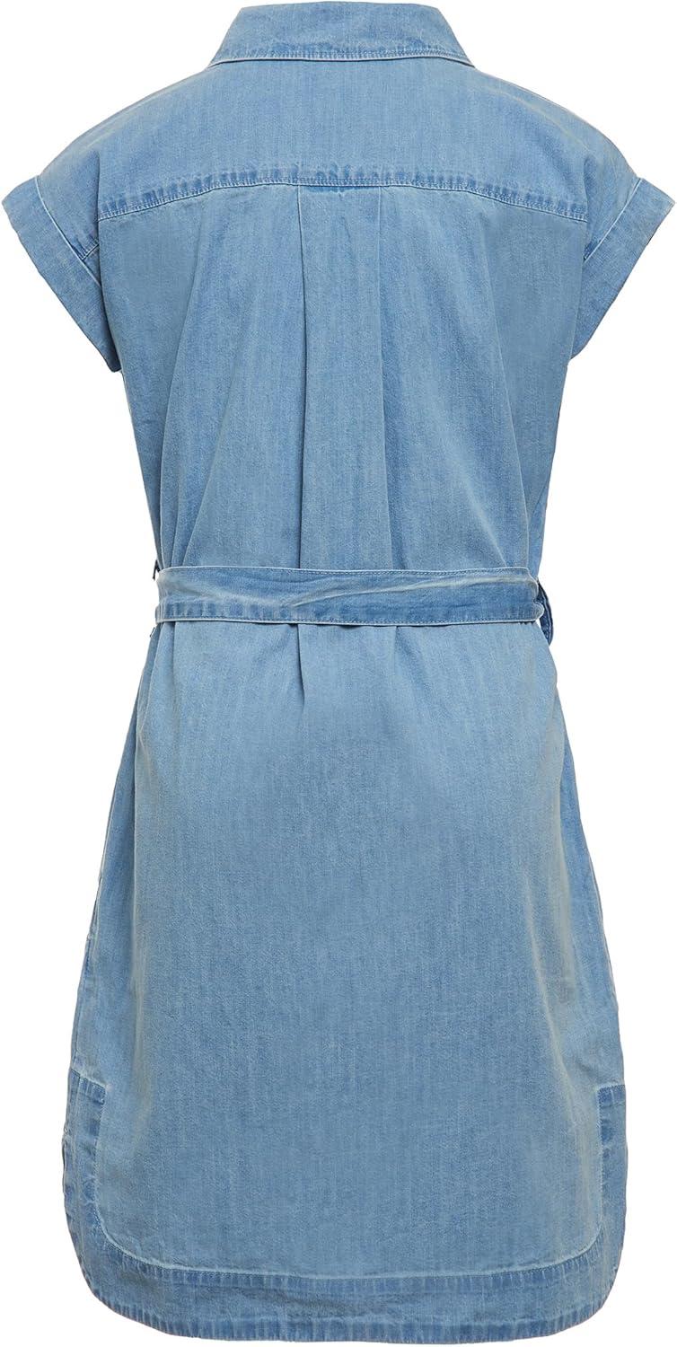 Calvin Klein Girls’ Short Sleeve Lightweight Chambray Denim Shirt Dress(Dark Chambray)