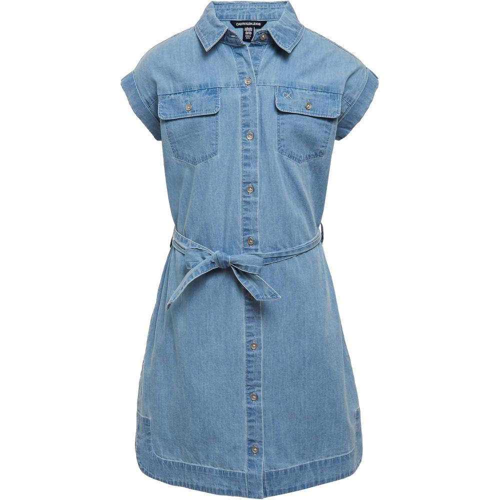 imageCalvin Klein Girls Short Sleeve Lightweight Chambray Denim Shirt DressDark Chambray