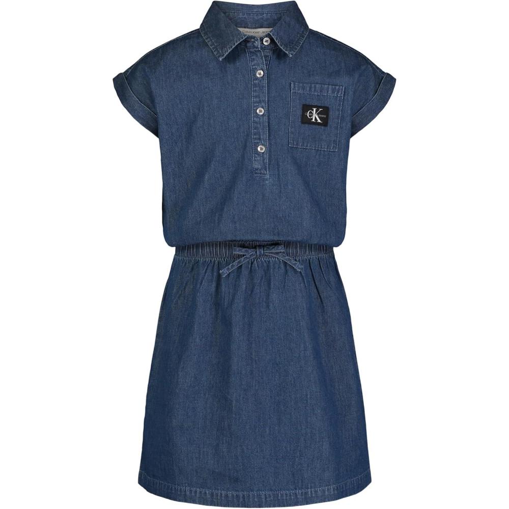 Calvin Klein Girls' Short Sleeve Lightweight Chambray Denim Shirt Dress(Medium Chambray/Popover)