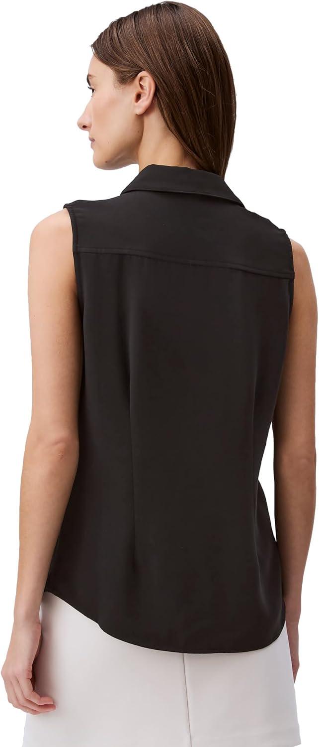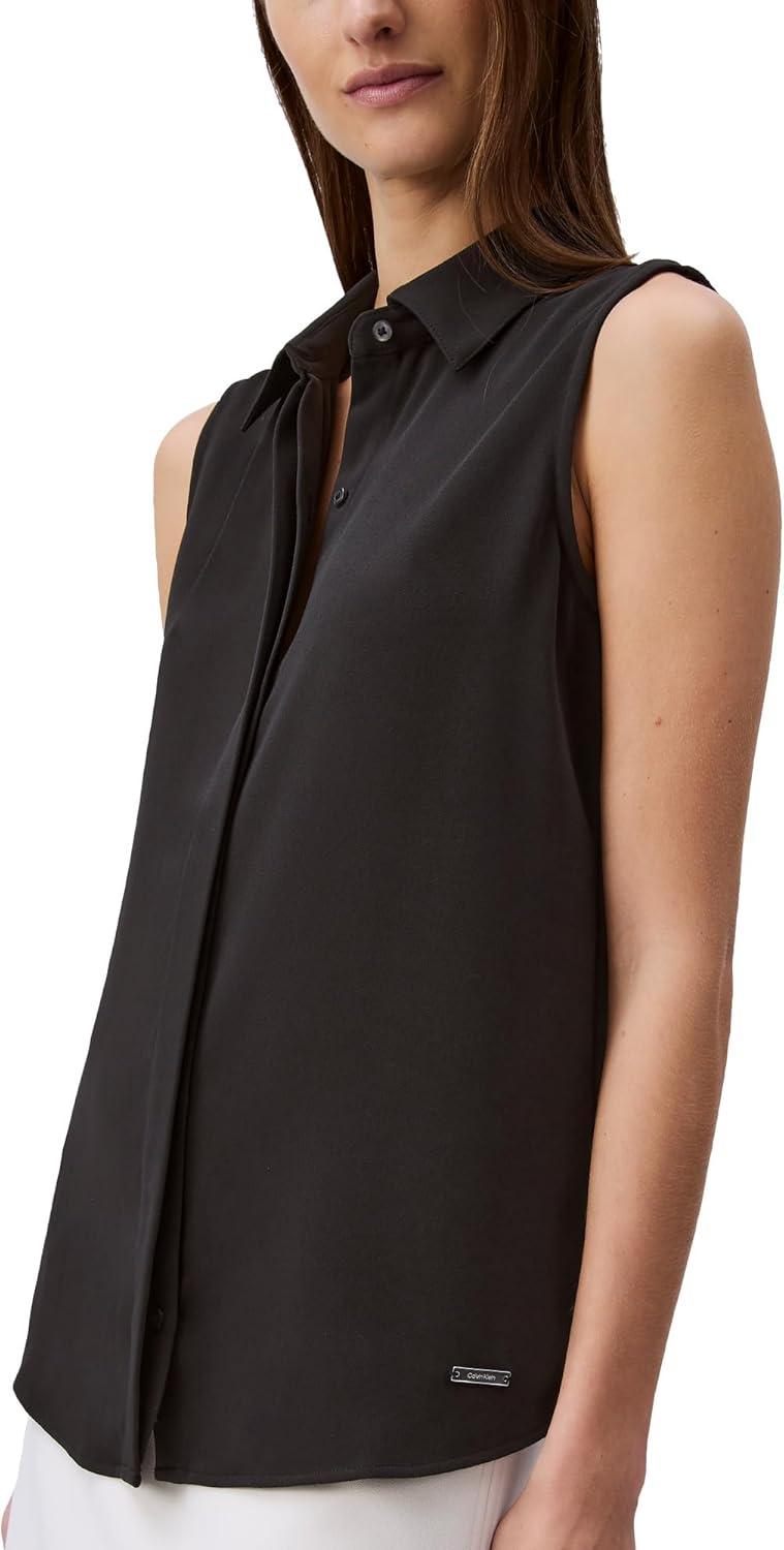 Calvin Klein Jeans Women's Crepe Sleeveless Button-Down Top(Black)