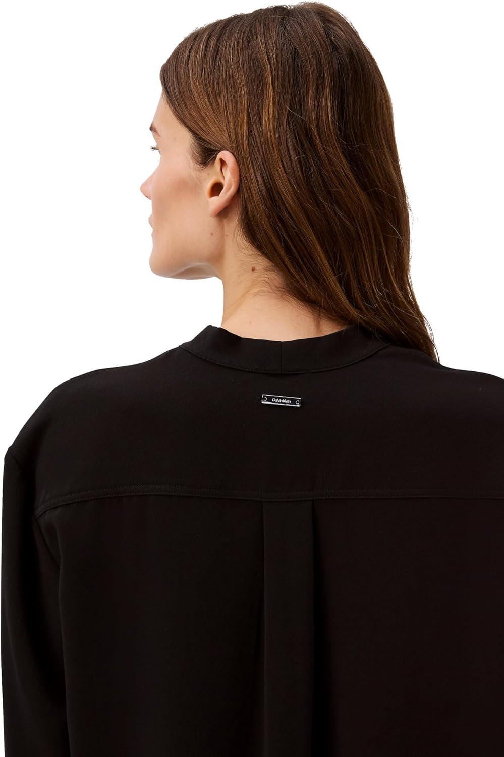 Calvin Klein Jeans Women’s Relaxed V Neck Blouse(Black)