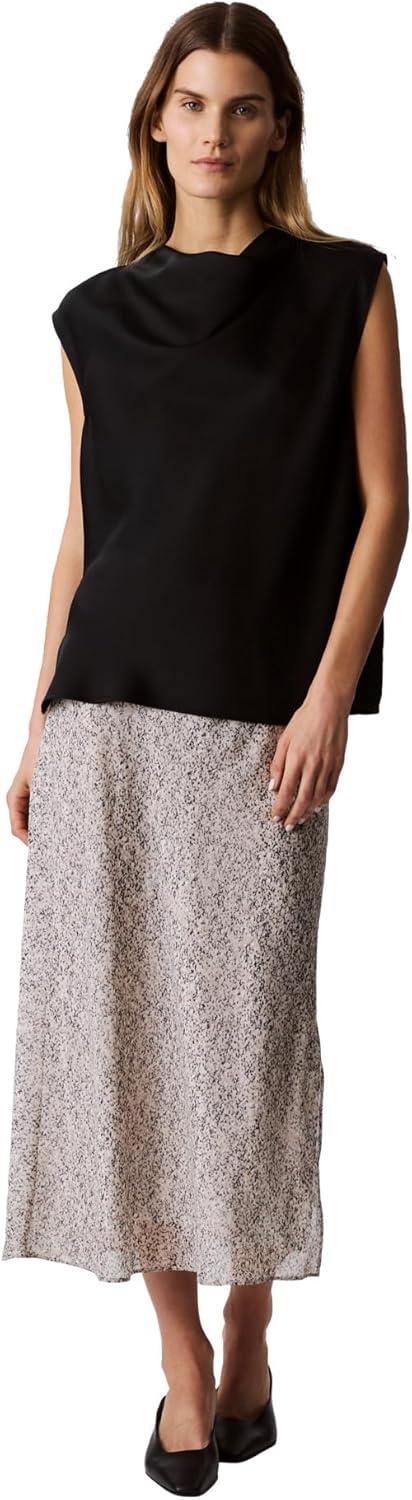 Calvin Klein Jeans Women's Satin Cowl Neck Blouse(Black)