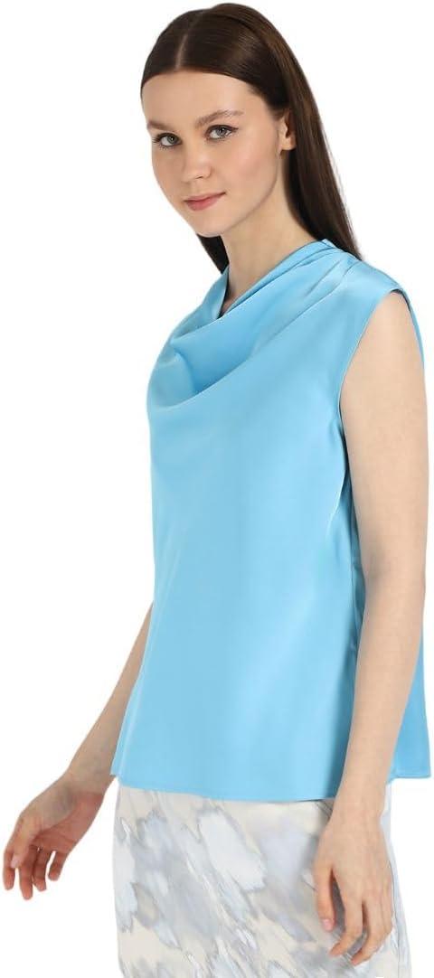 Calvin Klein Jeans Women’s Satin Cowl Neck Blouse(Ethereal Blue)