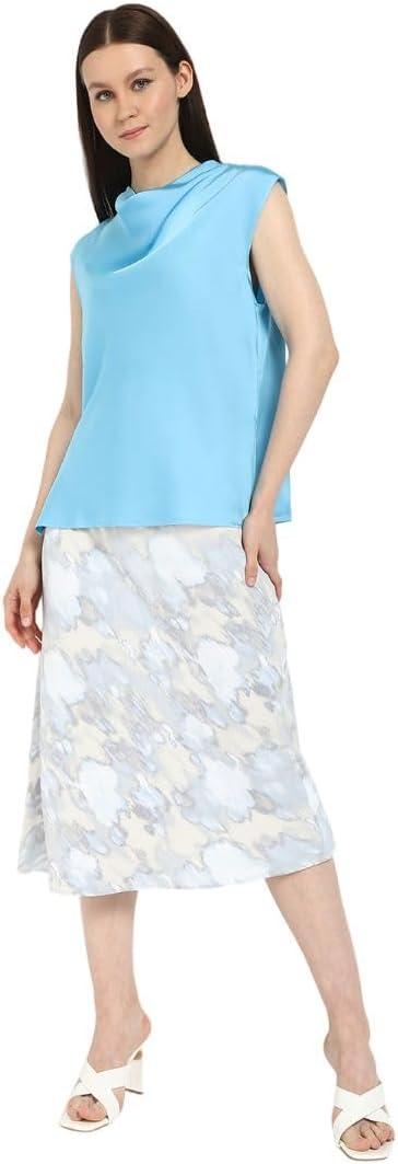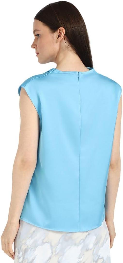 Calvin Klein Jeans Women's Satin Cowl Neck Blouse(Ethereal Blue)