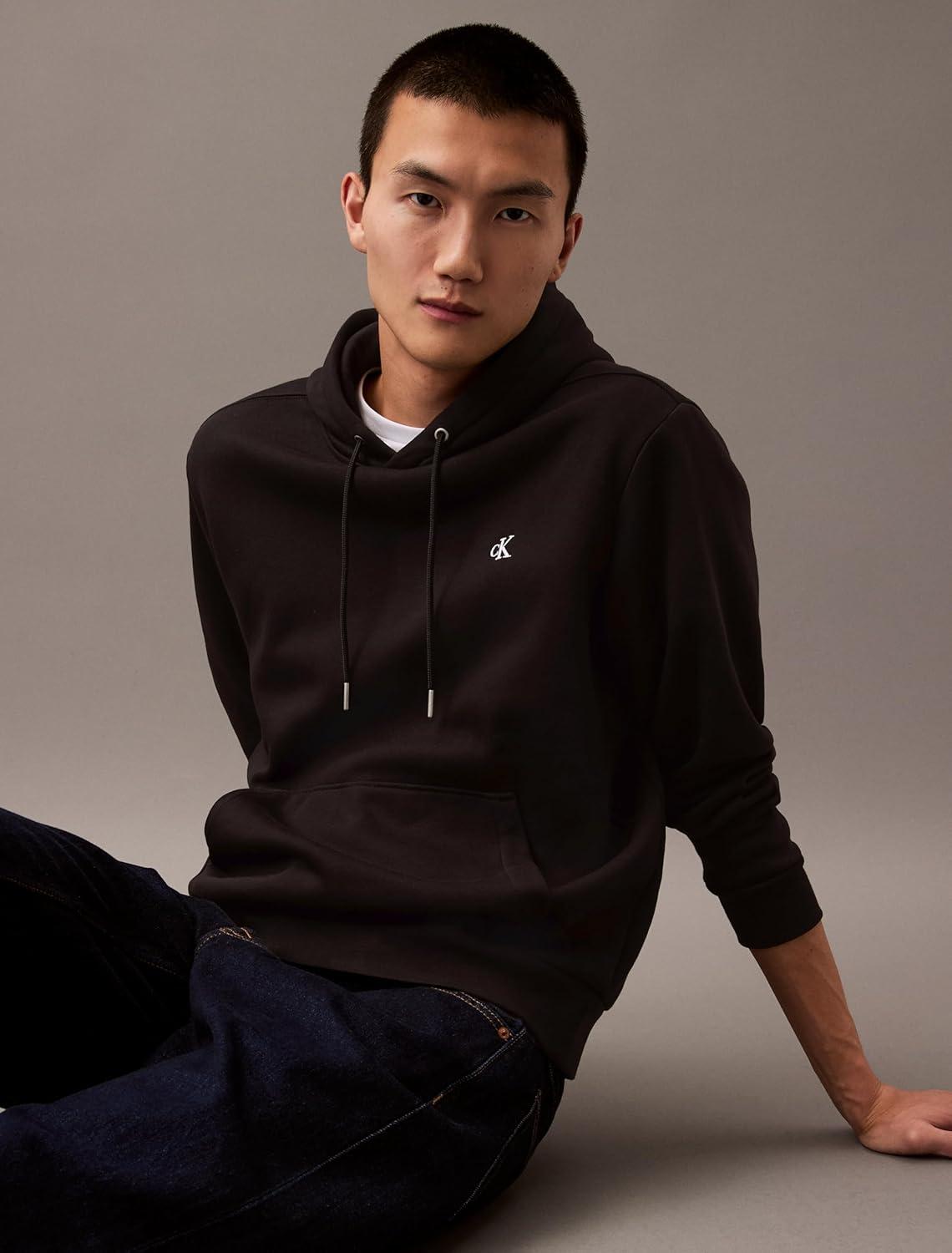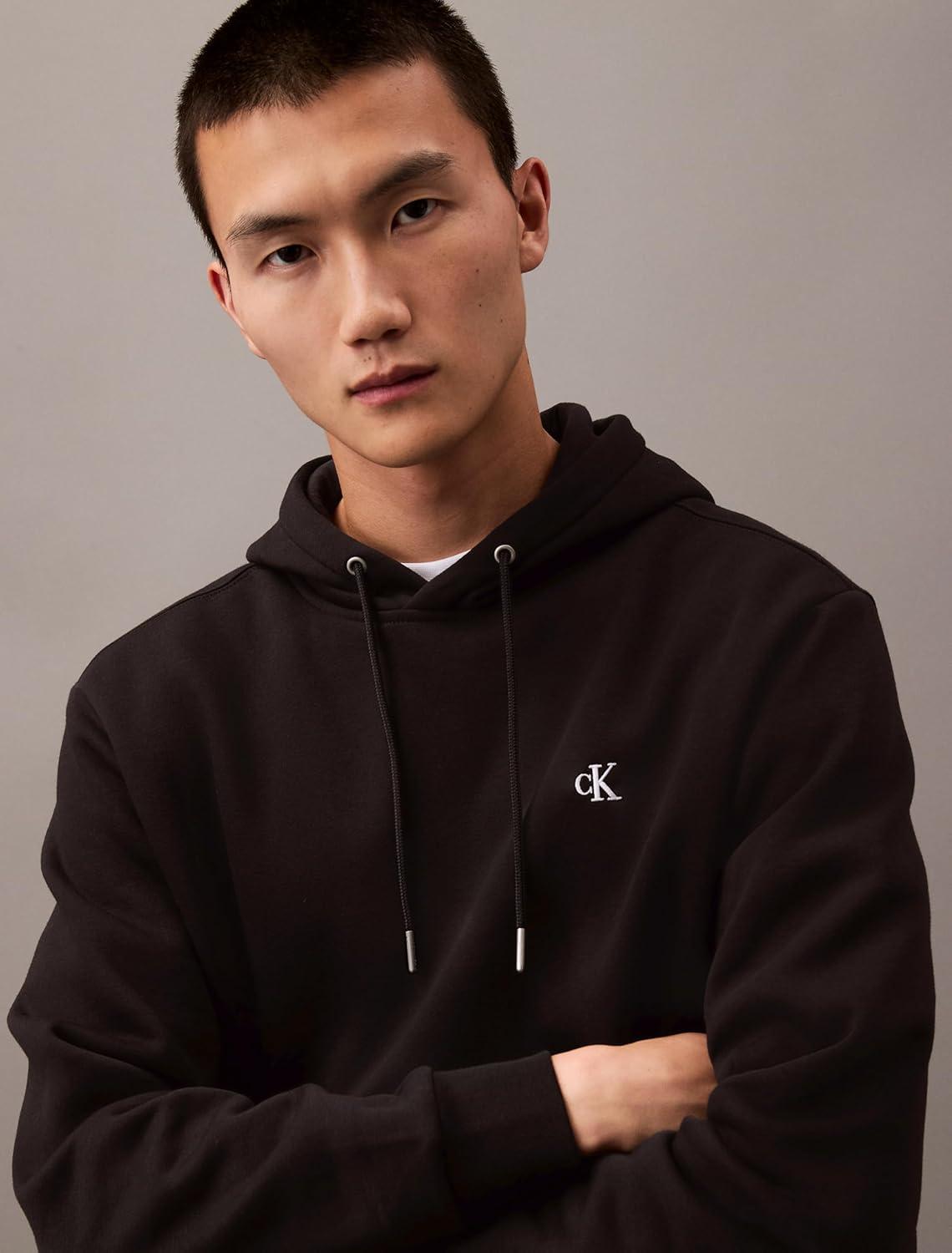 Designed with a solid body and a retro-inspired monogram logo, this Calvin Klein sweatshirt features a plush cotton knit fleece blend for premium, all-day comfort. Cut in a regular fit with a drawstring hood and ribbed knit trim. A fashion essential, this Calvin Klein hoodie is a versatile, on-trend layering piece for any collection.