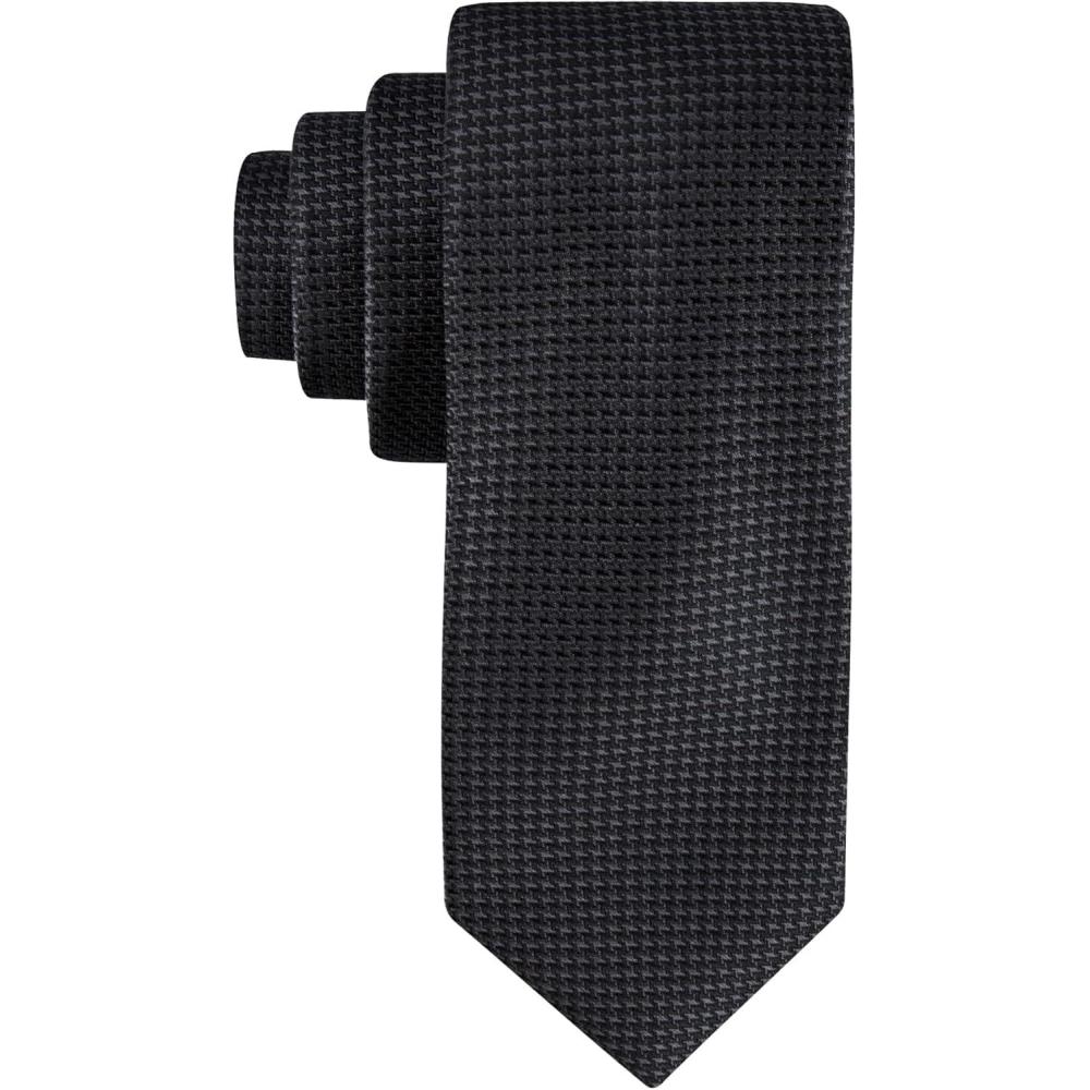 Calvin Klein Men’s Black Solid and Pattern Neckties – Classic Dress Ties for Work, Weddings & Formal wear(Black Plaid 2)