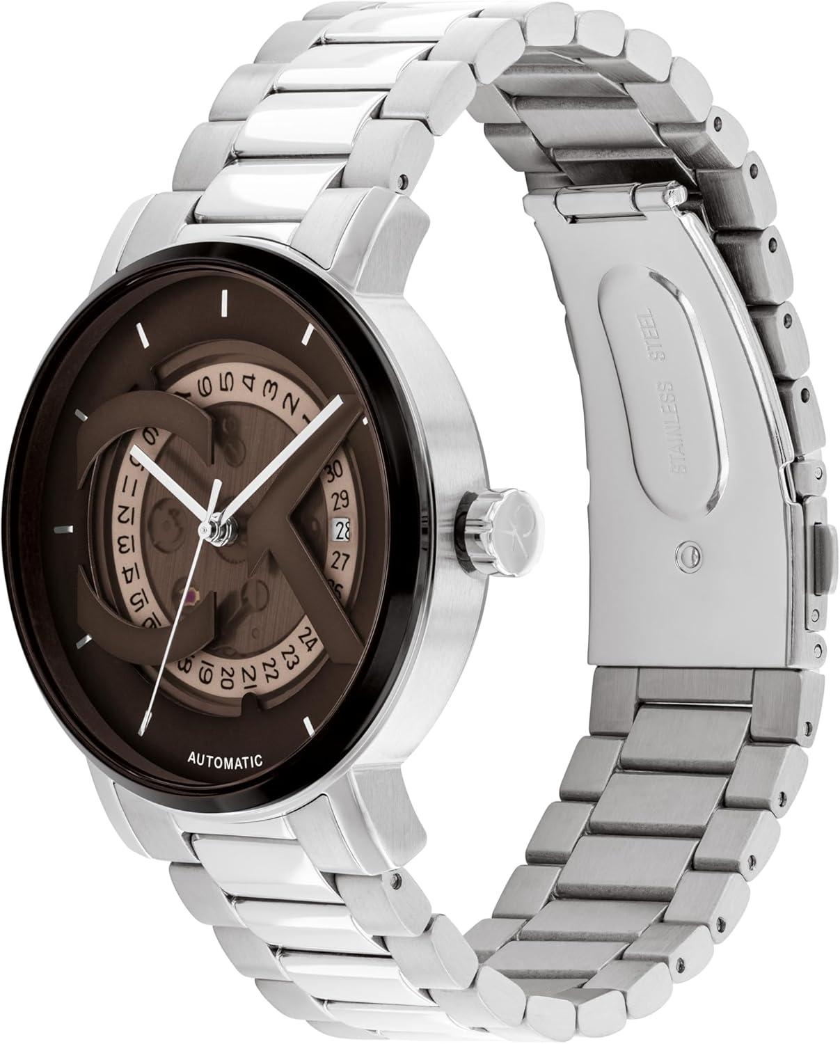 Calvin Klein Men's CK Iconic - 40mm 3H Automatic Watch - Stainless Steel Bracelet - Water Resistance 30 Meters - Self-Winding Mechanical Movement - Luxury Timepiece - Gift for Him(Silver-Brown)