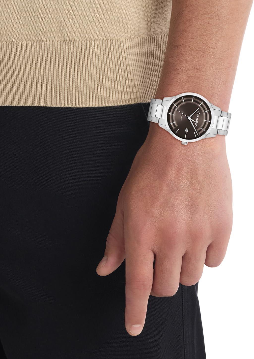 Calvin Klein Men’s CK Iconic – 40mm 3H Automatic Watch – Stainless Steel Bracelet – Water Resistance 30 Meters – Self-Winding Mechanical Movement – Luxury Timepiece – Gift for Him(Silver)