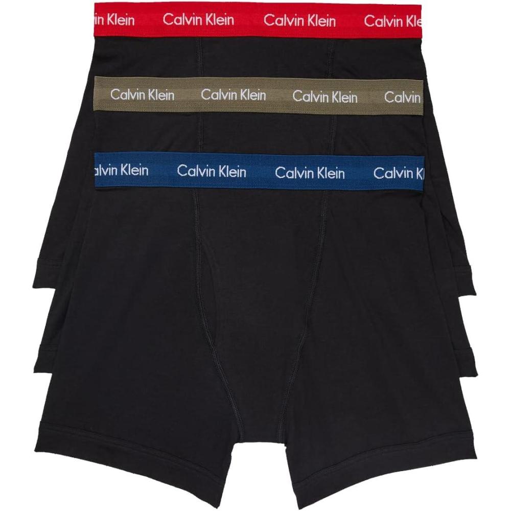 Calvin Klein Men’s Cotton Stretch 3-Pack Boxer Brief(Black Bodies W/ Aspen Berry Sangria Lake Crest Blue Wbs)