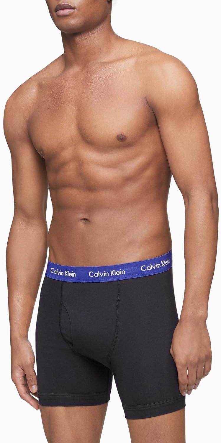 Calvin Klein Men’s Cotton Stretch 3-Pack Boxer Brief(Black Bodies W/ Aspen Berry Sangria Lake Crest Blue Wbs)