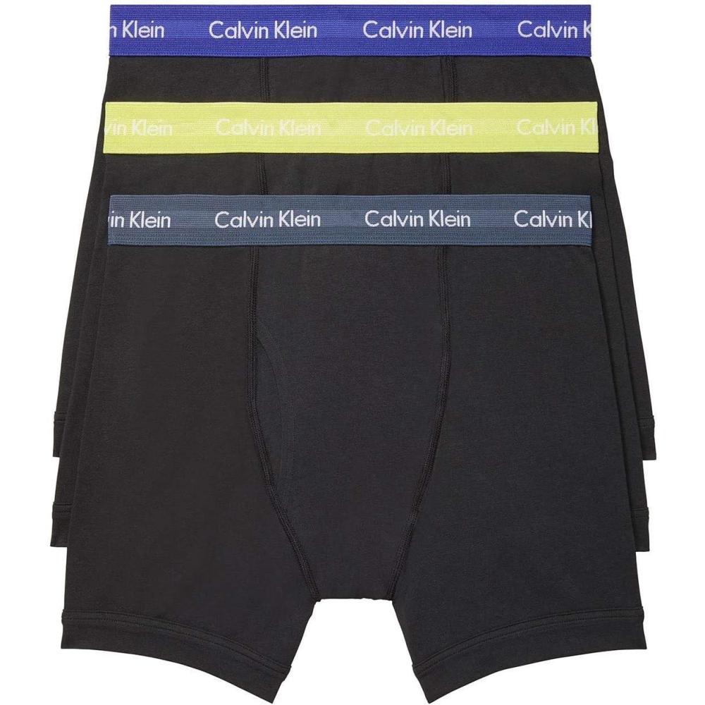 imageCalvin Klein Mens Cotton Stretch 3Pack Boxer BriefBlack Bodies W Hemisphere Blue  Direct Green  Blue Flannel