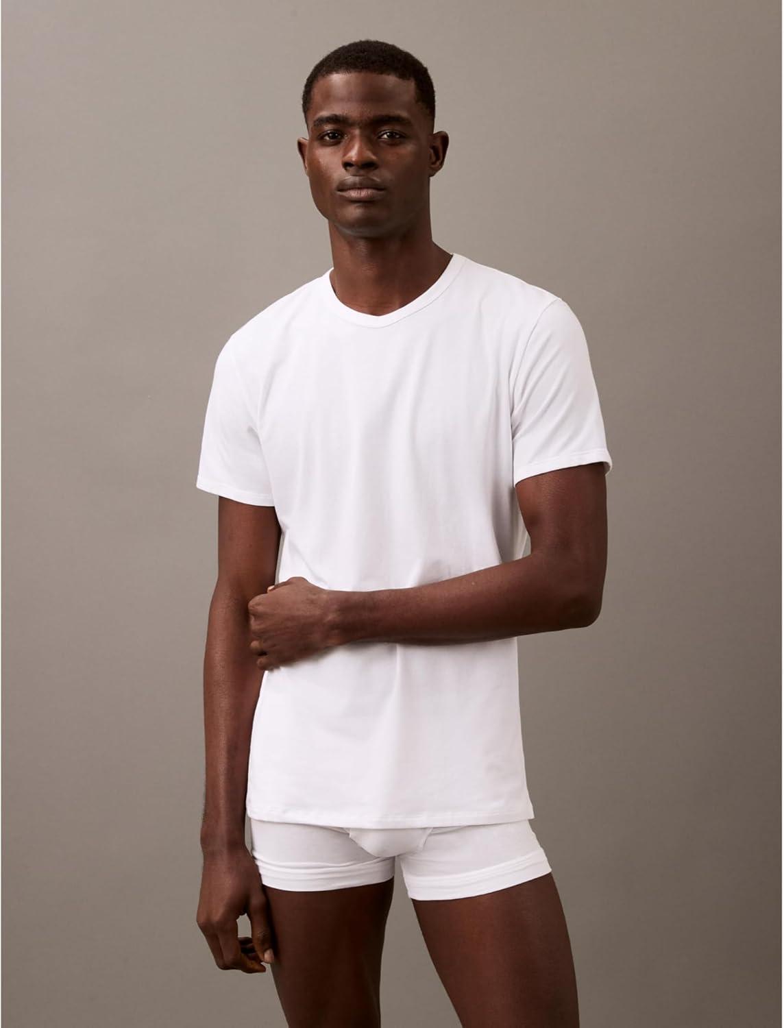 Calvin Klein Men's Cotton Stretch 3-Pack Undershirts(Black Grey Heather White Crewneck)