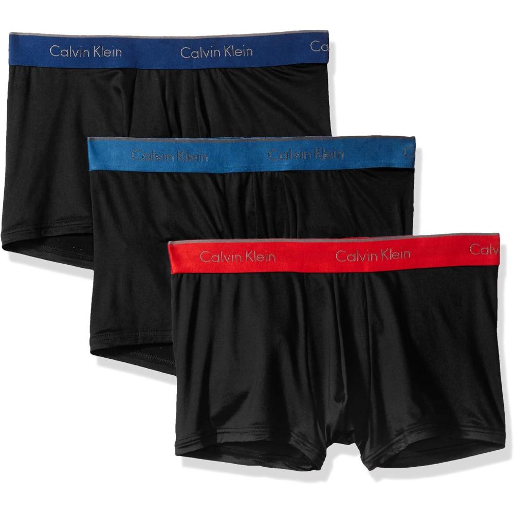 Calvin Klein Men’s Micro Stretch 3-pack Low Rise Trunk(Black/Capsize/Downpour/Manic Red)
