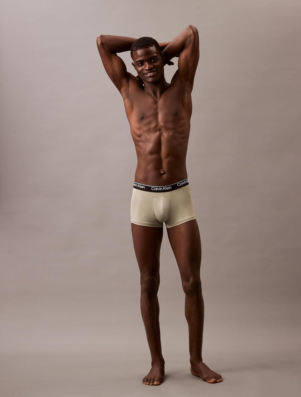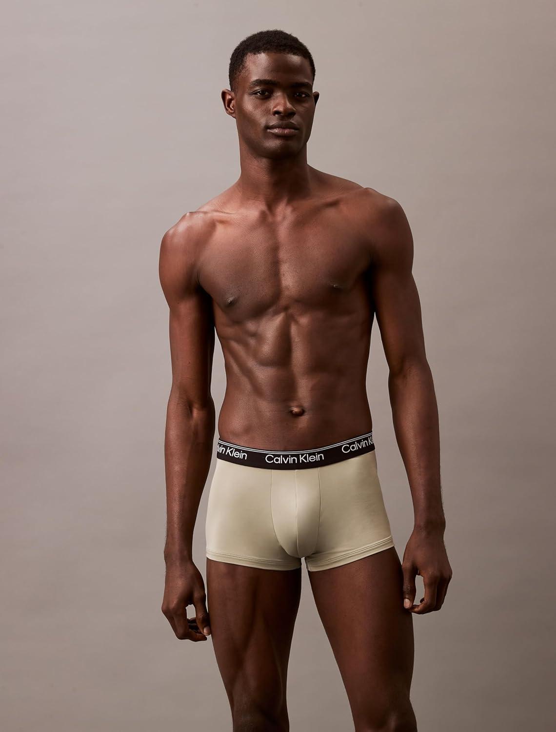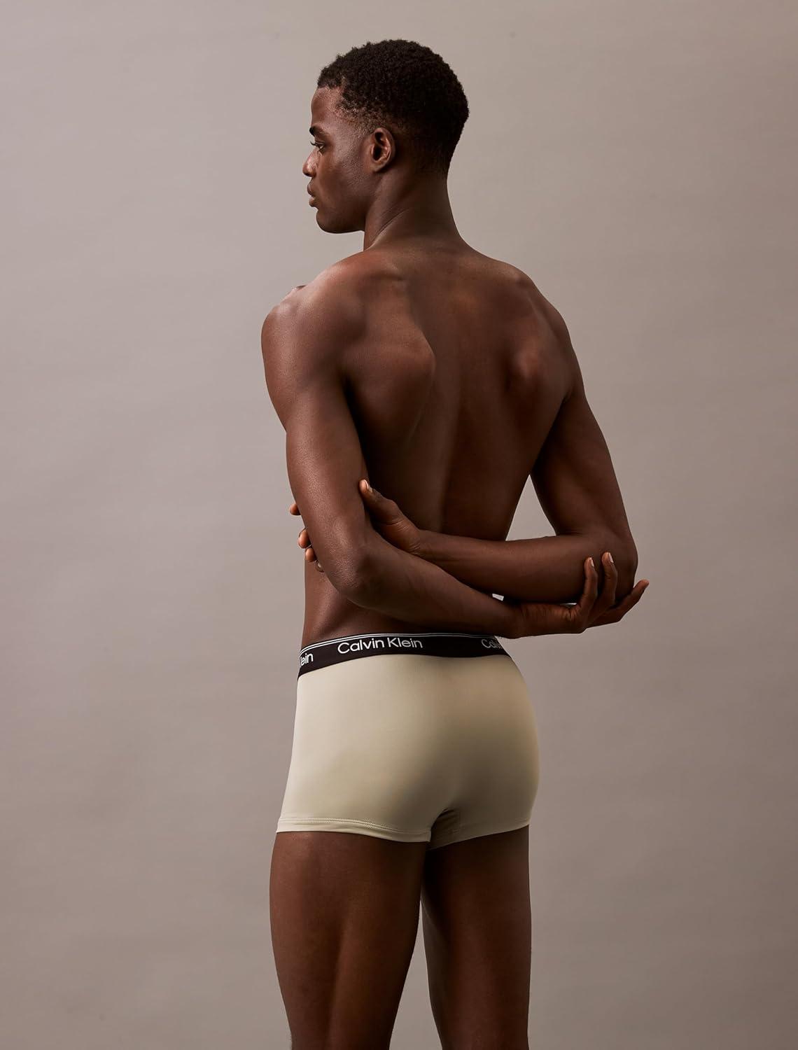 Calvin Klein Men’s Micro Stretch 3-pack Low Rise Trunk(Olive Tapioca Legion Blue)