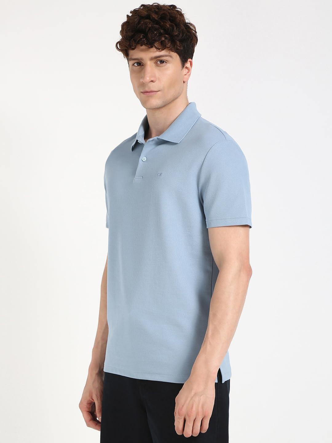 Calvin Klein Men’s Micro Waffle Polos(Faded Denim)