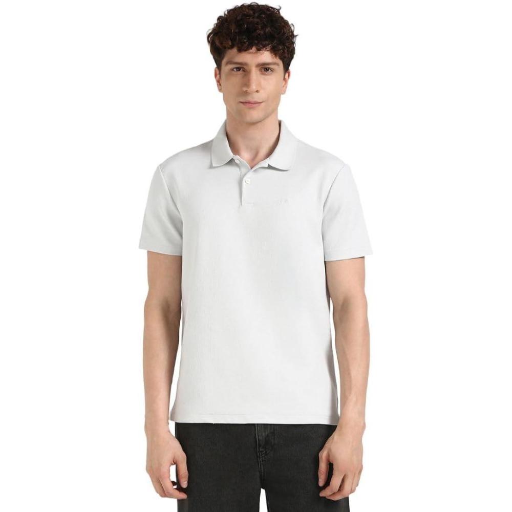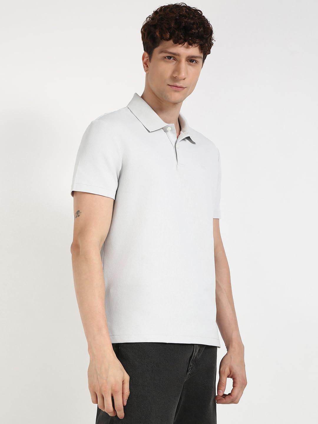 Calvin Klein Men’s Micro Waffle Polos(Oyster Mushroom)