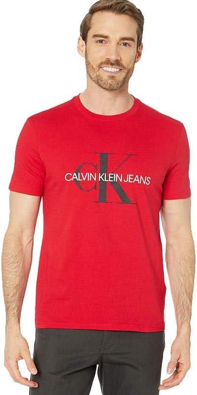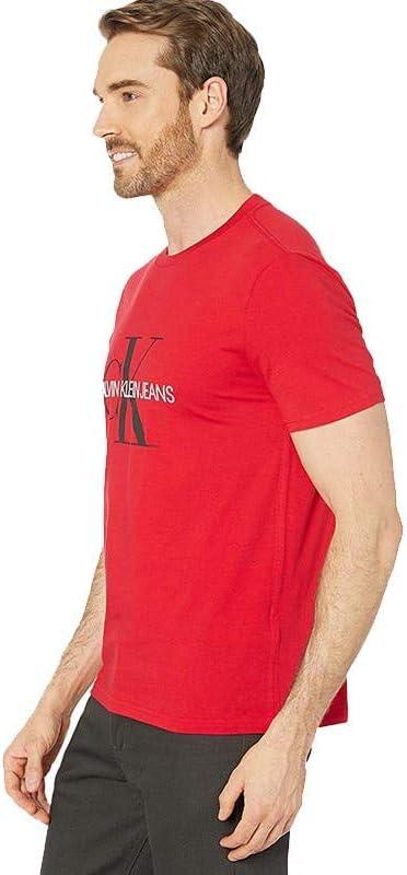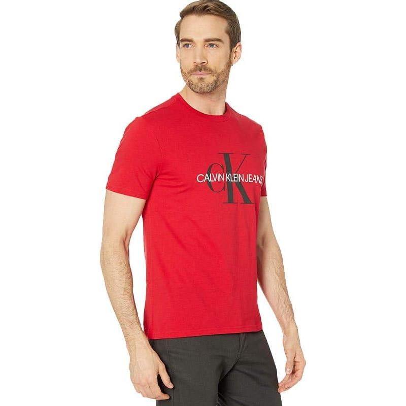 Calvin Klein Mens Monogram Logo Crewneck T-Shirt(Tango Red Unbox)