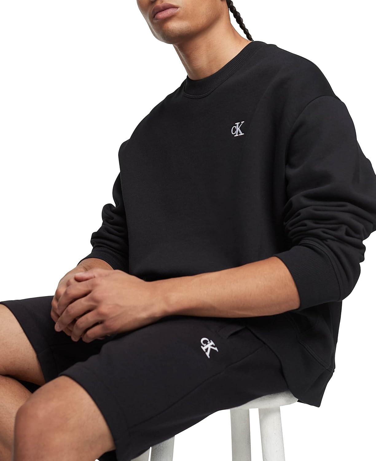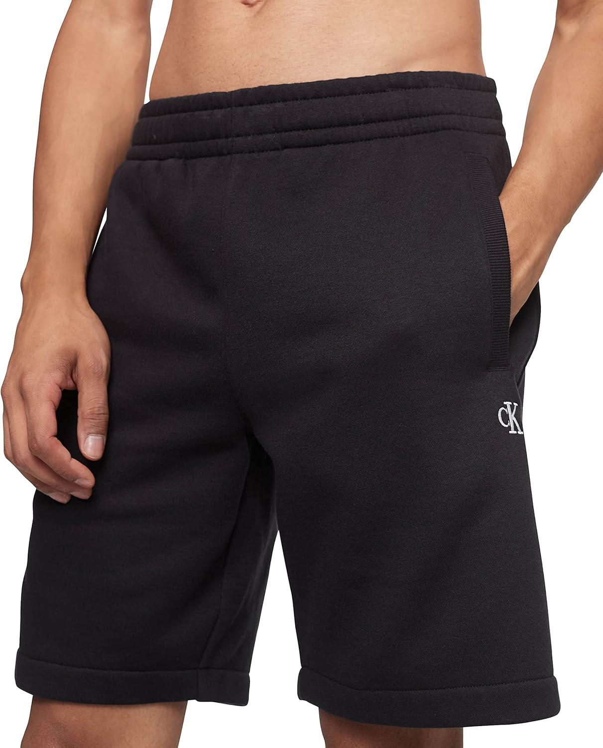 Calvin Klein Men’s Monogram Logo Fleece Shorts(Classic Black)